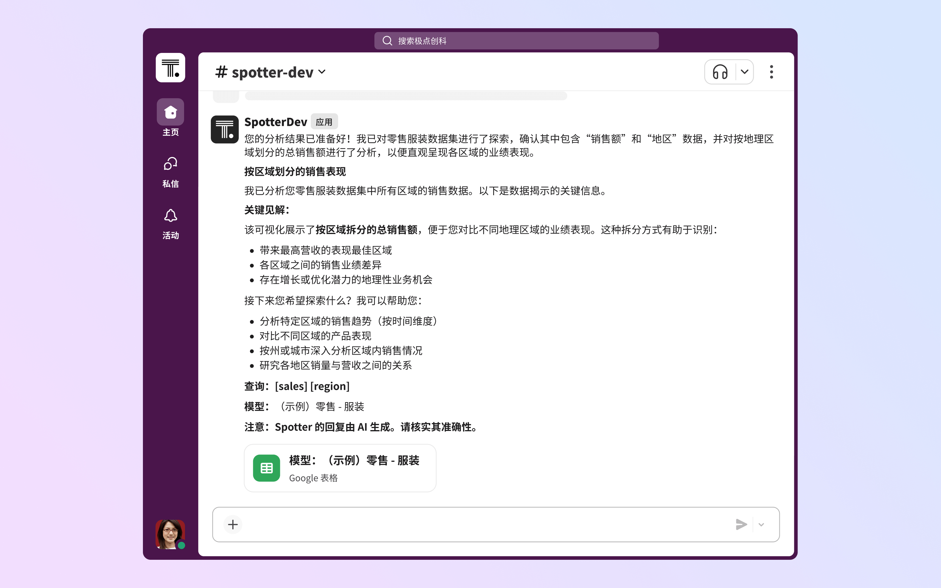 - Spotter:由 ThoughtSpot 推出的商业智能代理,通过 Slack MCP 服务器将实时企业数据与 Slack 对话安全地连接,将日常讨论转化为可执行的见解。团队可以用自然语言向 Spotter 提问,分析供应链库存水平、产品表现等各类数据,并将分析结果直接分享至 Slack 频道,确保决策始终基于最新见解。